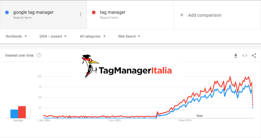 Il trend di Google Tag Manager è assolutamente in crescita negli ultimi cinque anni. Ce lo conferma Google Trends dove notiamo un’impennata oggettiva.