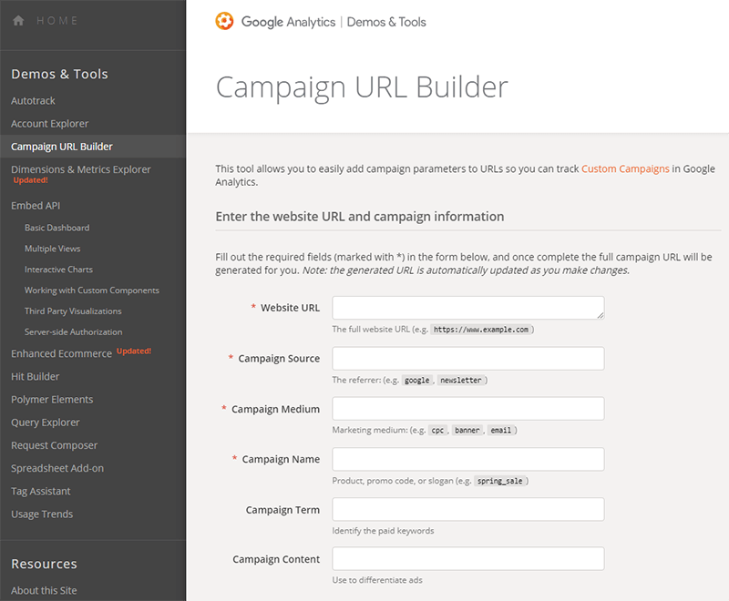 Google fornisce lo strumento di creazione URL per aiutarti ad inserire i parametri nei link.