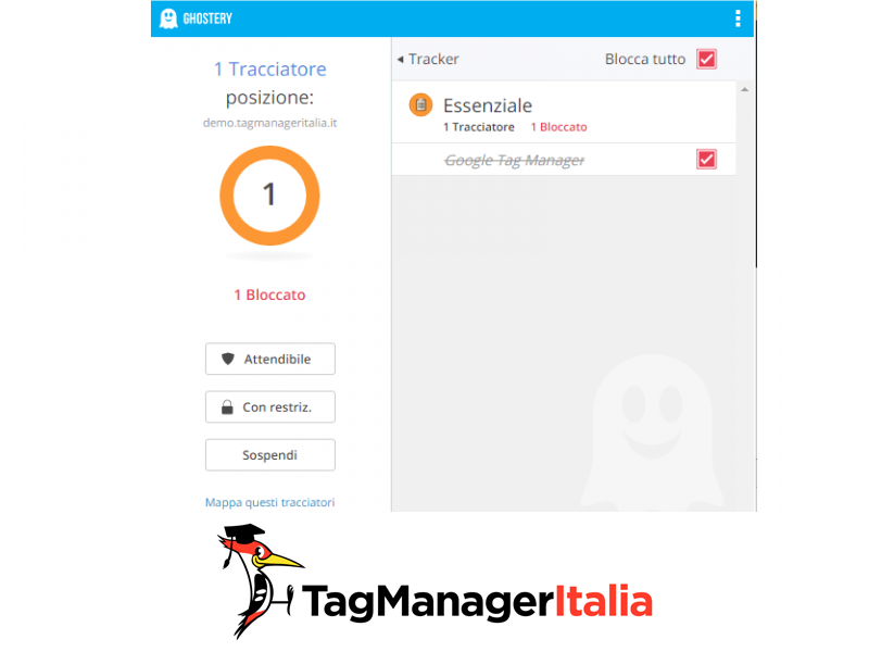 Ho un dubbio per quanto riguarda Ghostery. Io l’ho installato perché mi serve vedere quali tag installano i competitor. Il problema è che blocca anche il mio Google Tag Manager. Nello specifico, non riesco ad accedere alla modalità anteprima. Me la blocca proprio.