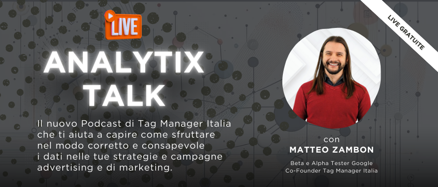 Hai mai desiderato un luogo dove i commenti sulle ultime novità, i metodi delle migliori strategie testate sul campo, le lezioni apprese negli anni da specialisti di marketing e digital analytics vengono condivise apertamente? Il tuo desiderio è stato esaudito. Sono entusiasta di presentarti ANALYTIX TALK, il nuovo podcast di Tag Manager Italia dedicato al ruolo chiave dei dati nelle attività di Social Media Marketing,